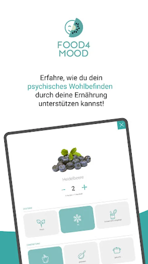 Food4Mood supports you in consuming the number of fruits and vegetables that can optimally boost your energy and mood.