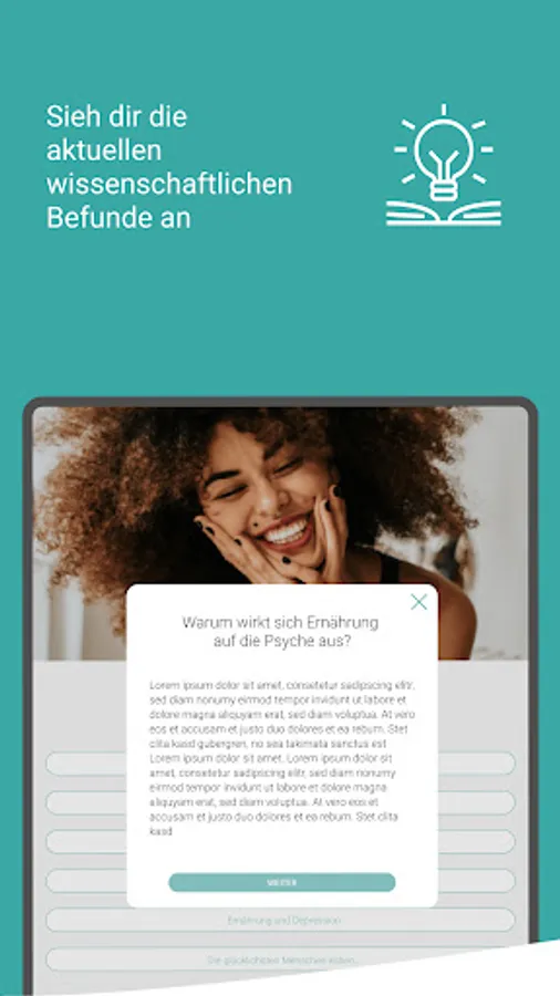 With the help of scientifically based information, personal evaluation, a variety of tips and motivating feedback, you will learn different strategies to achieve your individual goal.