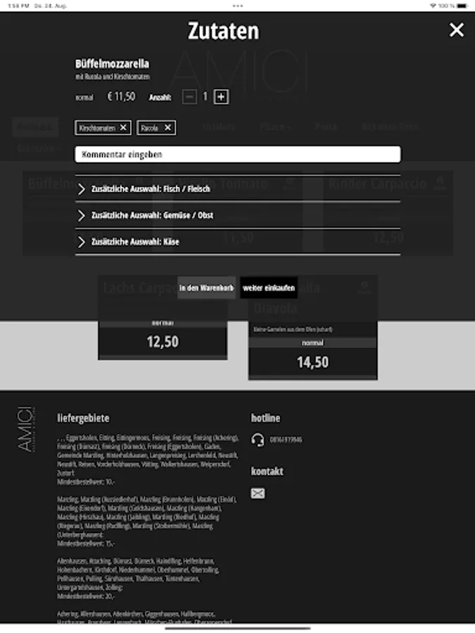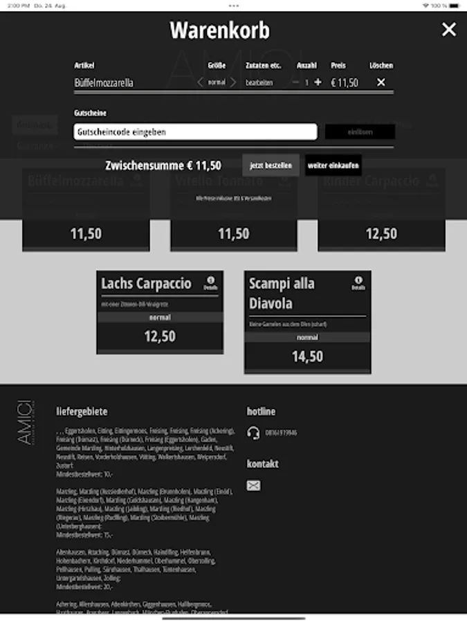 Once the current menu has been loaded (via Wi-Fi, for example), the mobile phone connections of the rural regions are also sufficient to be able to order in a matter of seconds.