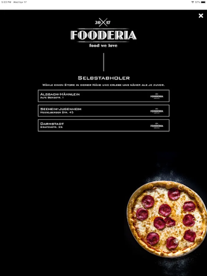 With the official FOODERIA® app you can taste it even faster! All important information - whether exciting promotions, features or details are always at hand here. The app also saves your data so that you don't have to enter all of the information again next time.