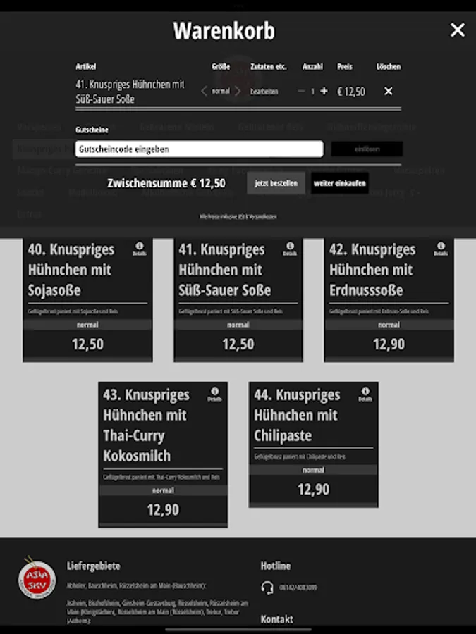 Once the current menu has been loaded (e.g. via WLAN), the mobile phone connections in rural regions are sufficient to be able to order in seconds.