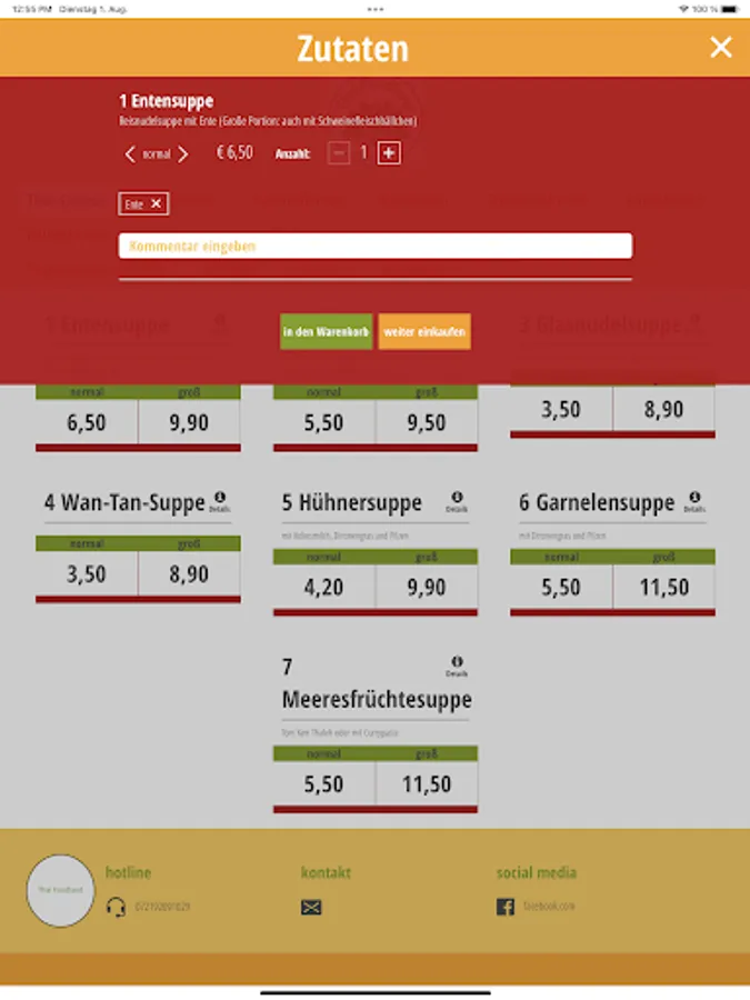 Once the current menu has been loaded (e.g. via WLAN), the mobile phone connections in the rural regions are sufficient to be able to order within seconds.