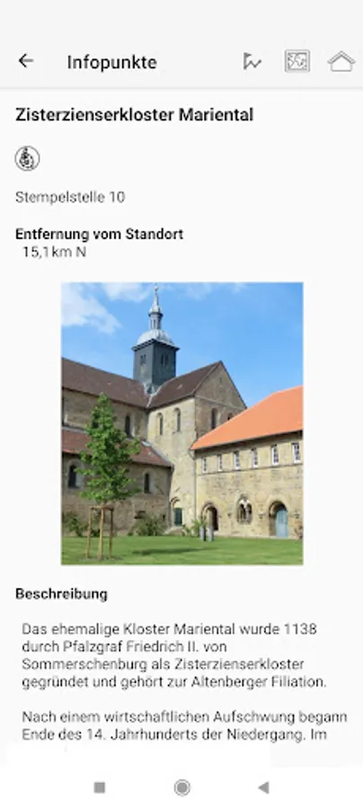When you get close to the information/stamping point, a pop-up will appear and you will hear a beep. After pressing the OK button you will receive the digital stamp and a sticker with more information about this place as MP3 information as well as image and text.