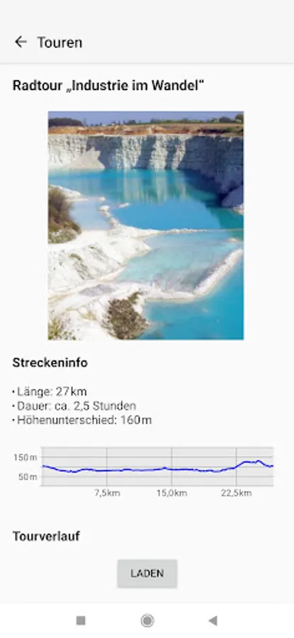 In the main menu you will also find a list of all tours included in the app. The tour description contains information such as length, altitude, degree of difficulty and the course of the route with information on the POIs (points of interest) along the route.