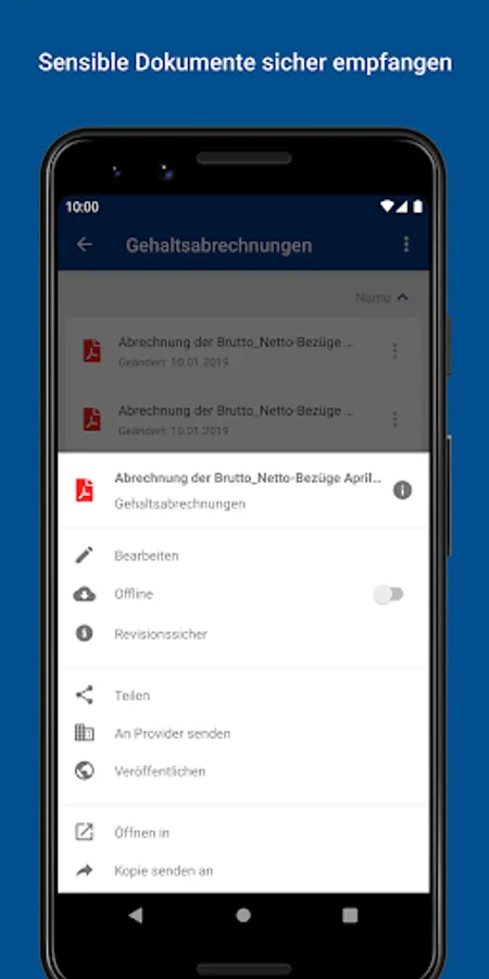 With our app you always have your secure document manager with you! You can now easily and simply receive, organize, edit, synchronize and share documents. Environmentally friendly and economical, thanks to paperless document filing.