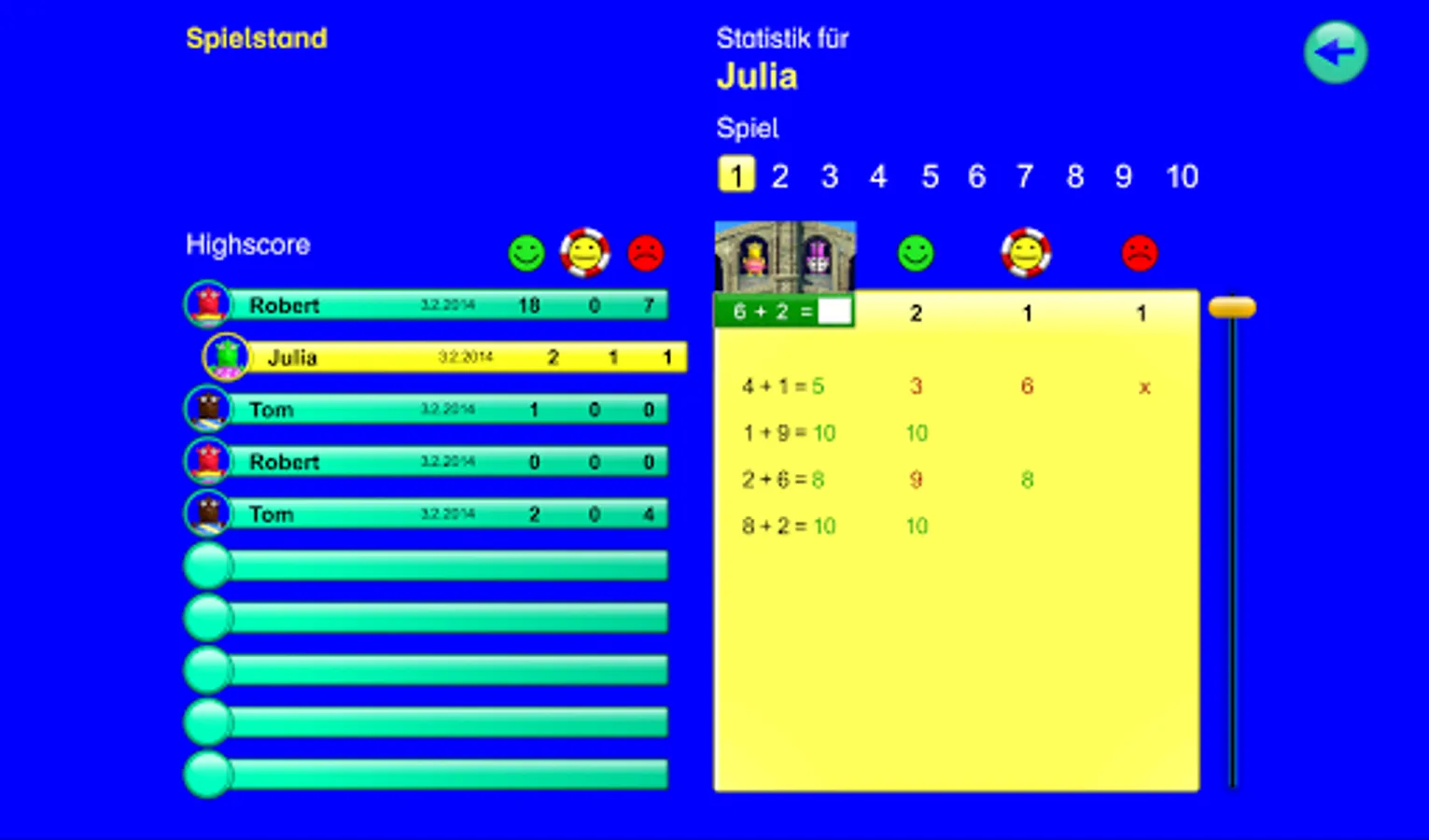 Each player starts off with 3 lifebelts. They are automatically used up each time the player makes a mistake. Each player has a second chance and is given the opportunity to correct the math problem alone or can use the lifebelt to get to the solution path – without any hurry. Once a player has saved 10 Drippos, he automatically gets an additional lifebelt.