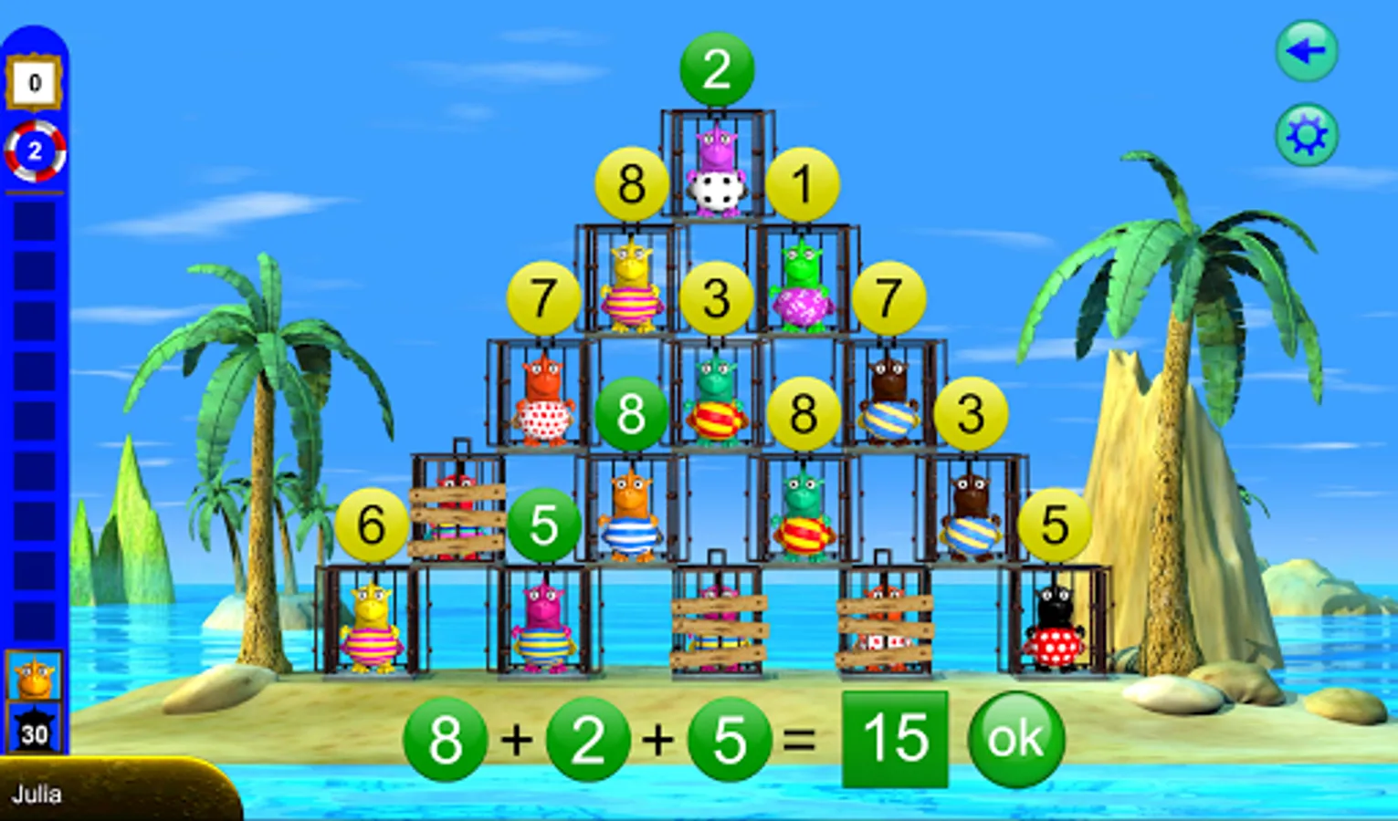 The players can chose the islands on which they would like to save Drippos. Each child is thus given the chance to reach the finishing line no matter how good the child is at mathematics.