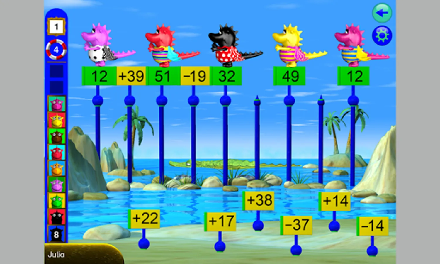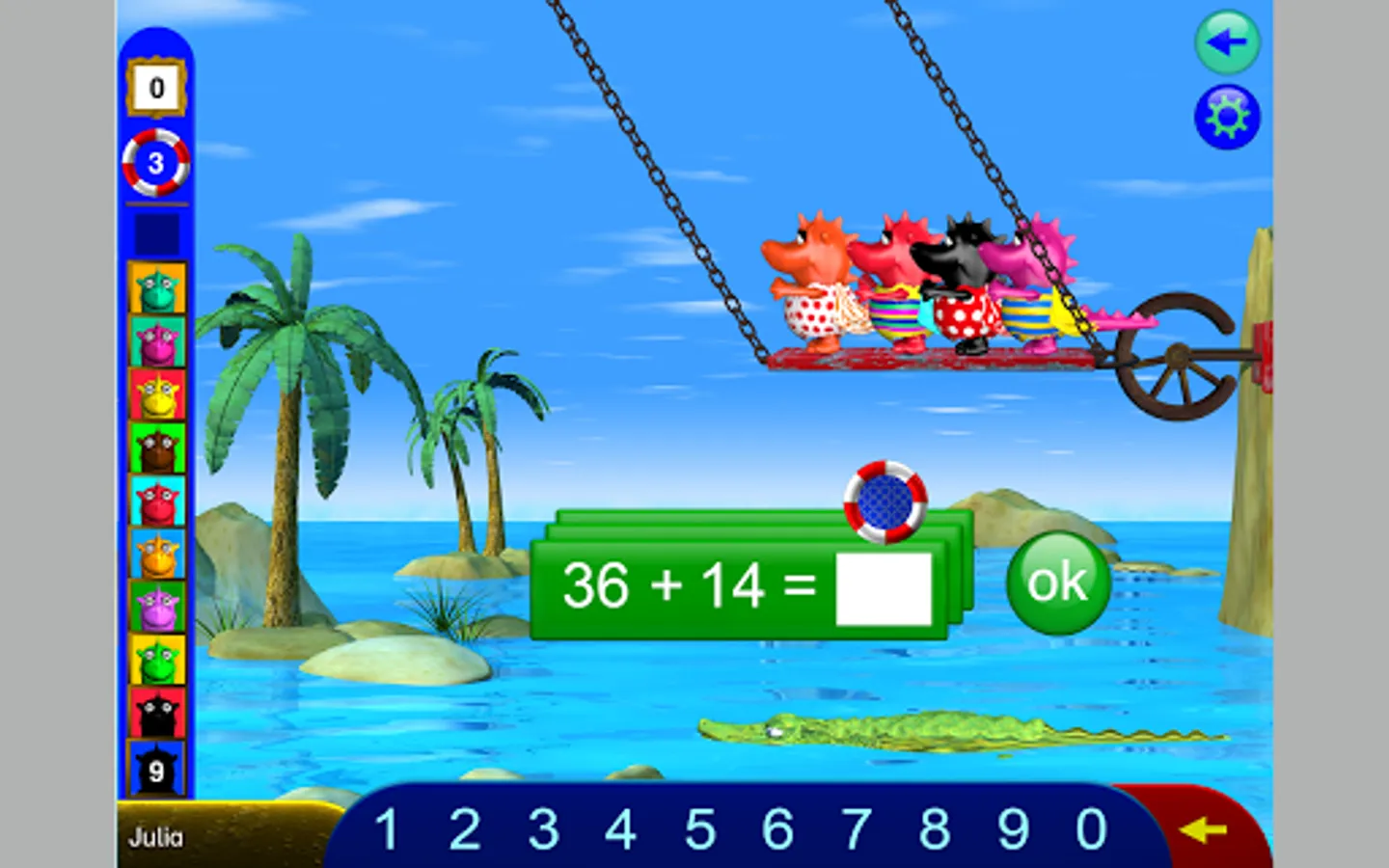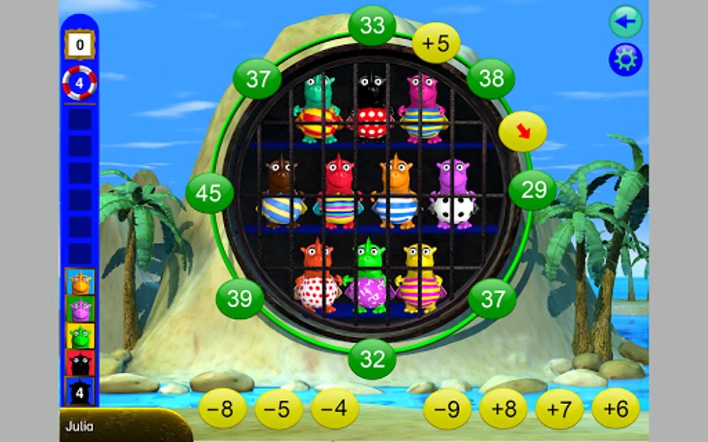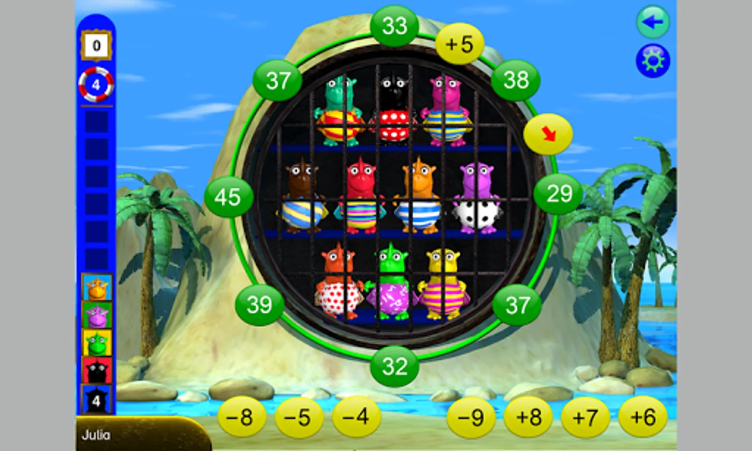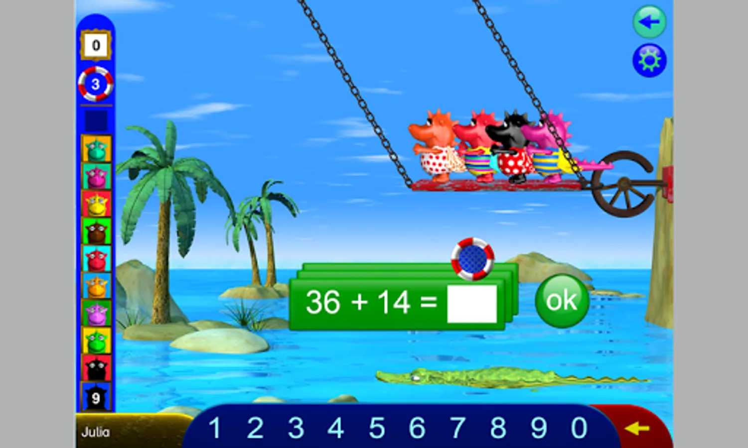 Each player starts off with 3 lifebelts. They are automatically used up each time the player makes a mistake. Each player has a second chance and is given the opportunity to correct the math problem alone or can use the lifebelt to get to the solution path – without any hurry. Once a player has saved 10 Drippos, he automatically gets an additional lifebelt.