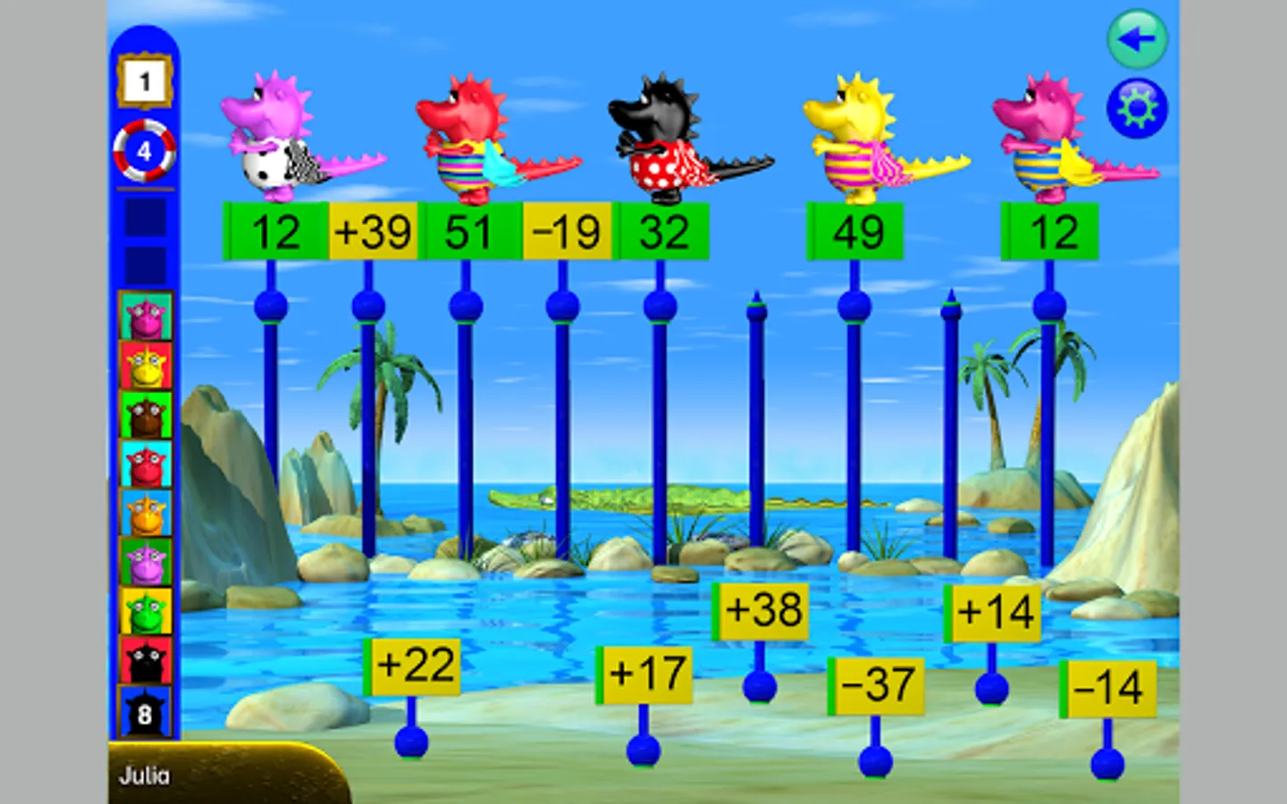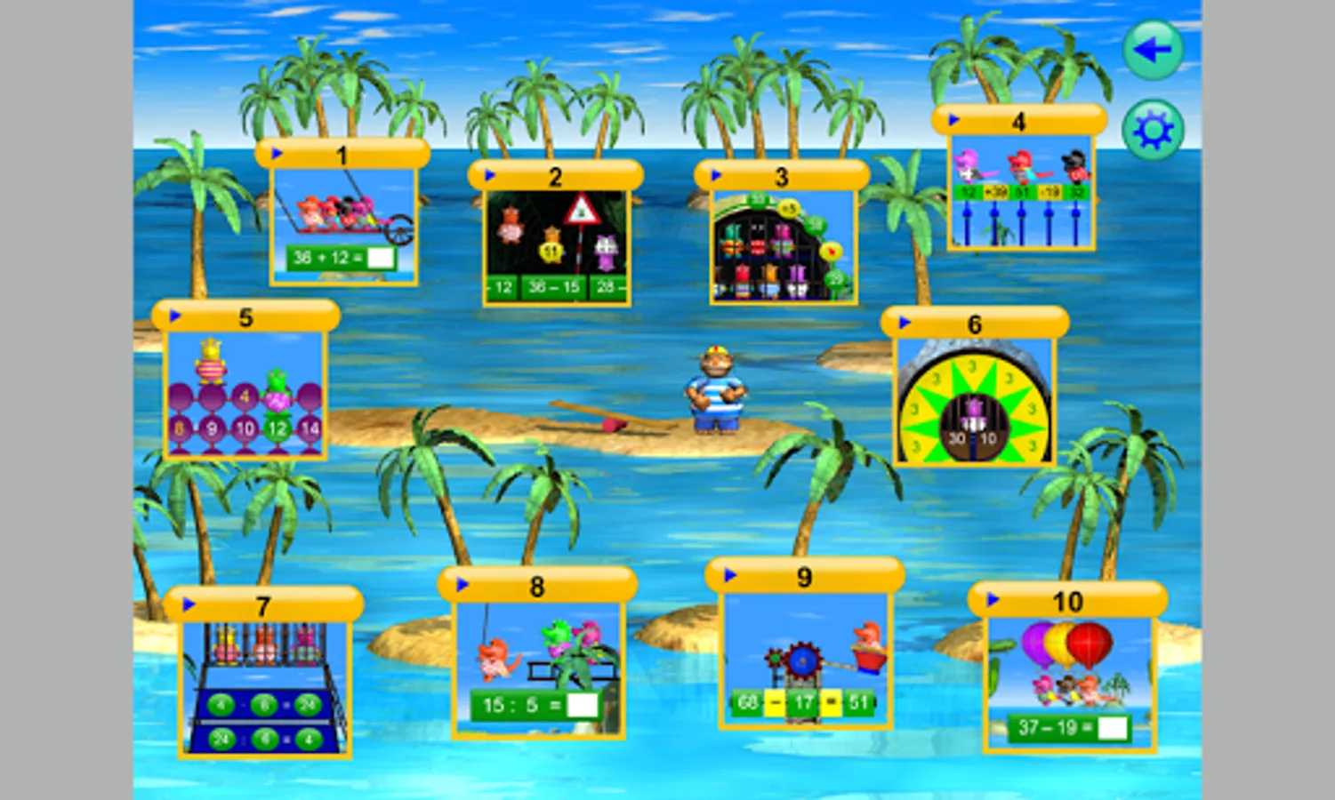 The players can chose the islands on which they would like to save Drippos. Each child is thus given the chance to reach the finishing line no matter how good the child is at mathematics.