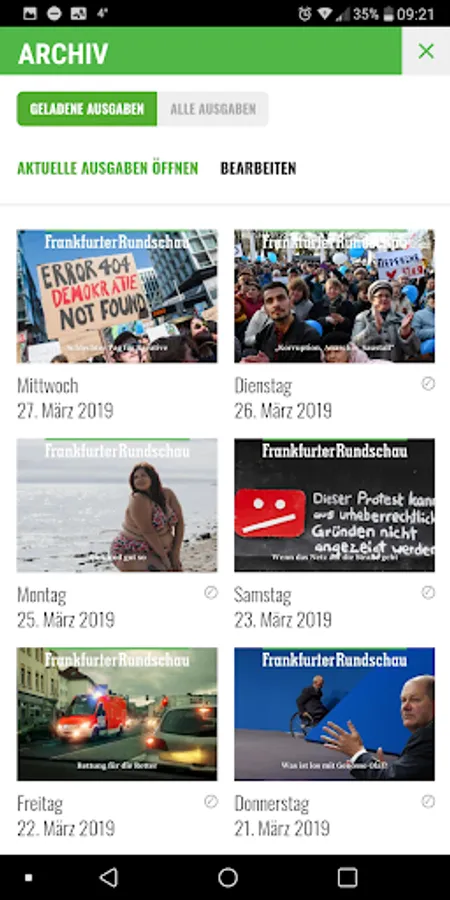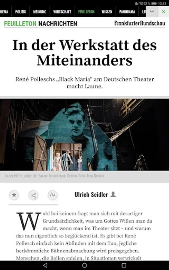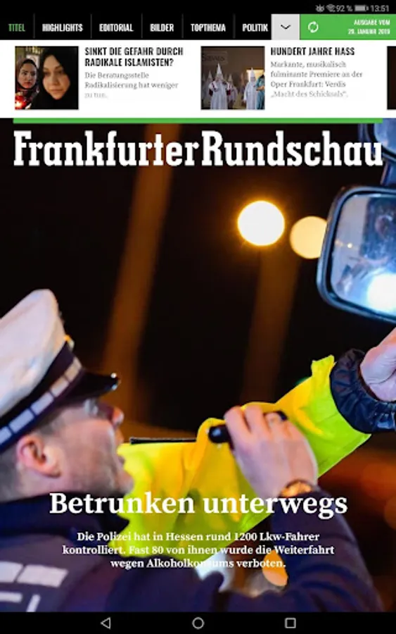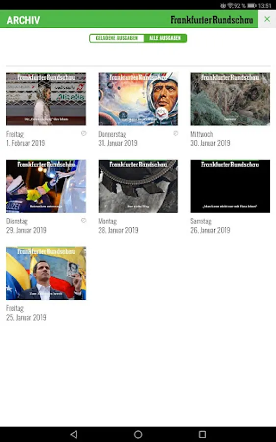 If you wish, almost all articles and functions of this app are available after download without online access. You determine whether the content is only loaded with WLAN or also via mobile phone connections - and whether photo series should be included or not. In the end, you can read the Frankfurter Rundschau wherever you want on your tablet: on the train, on the plane, in a café. Even without internet access.