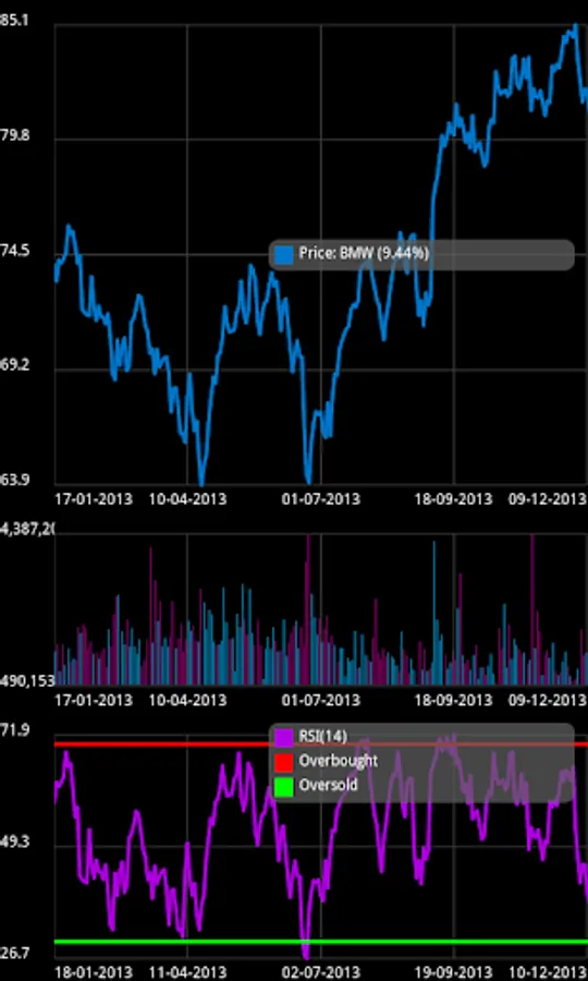 The application analyzes EOD (End Of Day) shares of the Frankfurt Stock Exchange WSE. As a result, the Frankfurt Stock Analyzer provides technical overbought/oversold indicator RSI in a clearly way, which can be very helpful in the investment decision.