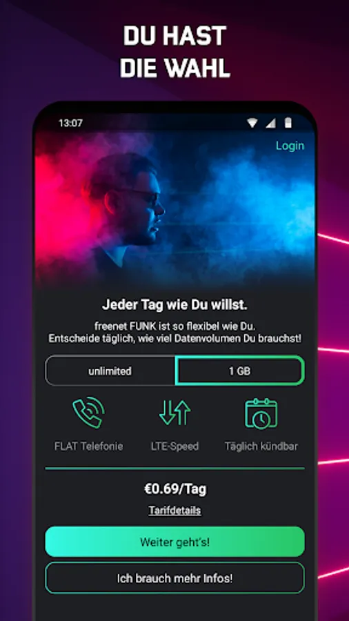 freenet FUNK - the cellular revolution. Be there and secure your first mobile phone contract that you can control via the app. Tired of long-term mobile phone contracts? With us you can cancel or change your contract every day. Very easy and flexible.
