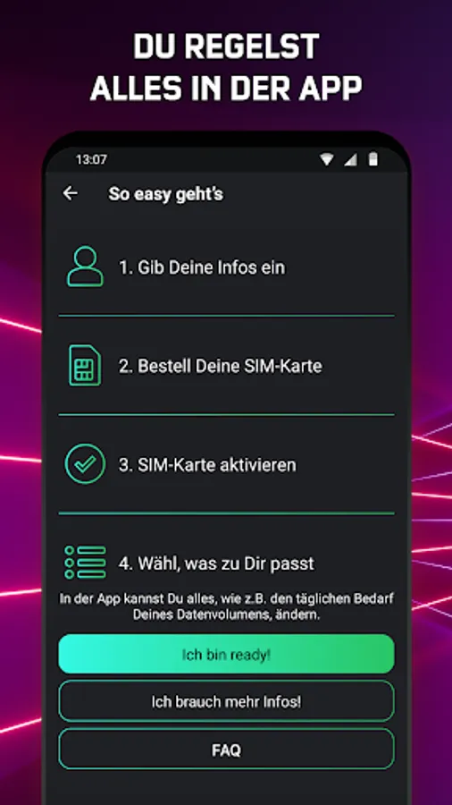 The freenet FUNK app gives you full access to your cellular network and the mobile Internet with unlimited high-speed LTE volume. And it's super cheap too! You can choose between 2 tariffs - every day anew! For 1 GB high-speed LTE you pay 69 cents per day, for unlimited data volume only 99 cents per day! With it you can surf the internet as much as you want! We bill daily. You are dissatisfied? There is no minimum term, you can cancel at any time! Do you need a short digital detox? Just pause in the app. Are you hanging on your phone number? No problem, bring them with you! We will contact your current provider and arrange for you to be taken along. Payment is easy from the app via PayPal. No IBAN, no BIC, no TAN.