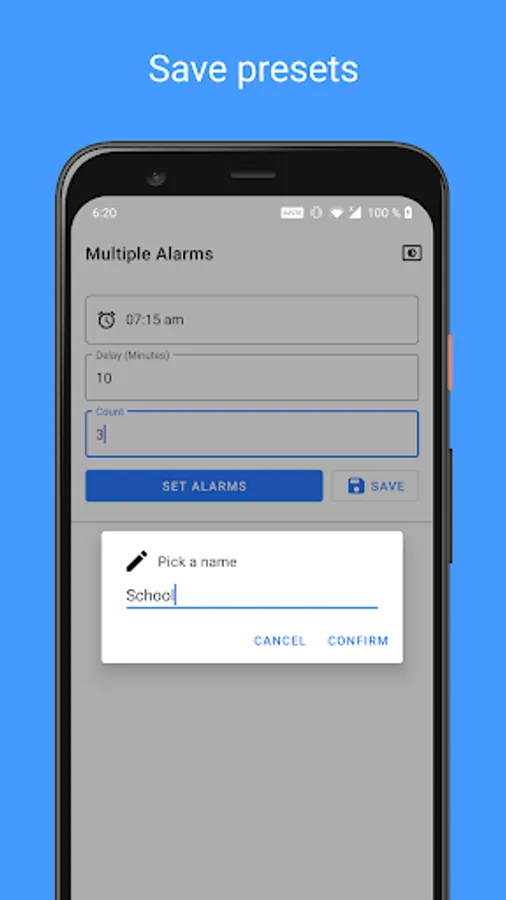 If you have a set of parameters that you need to use regularly you can even save a preset to set your alarms more quickly.