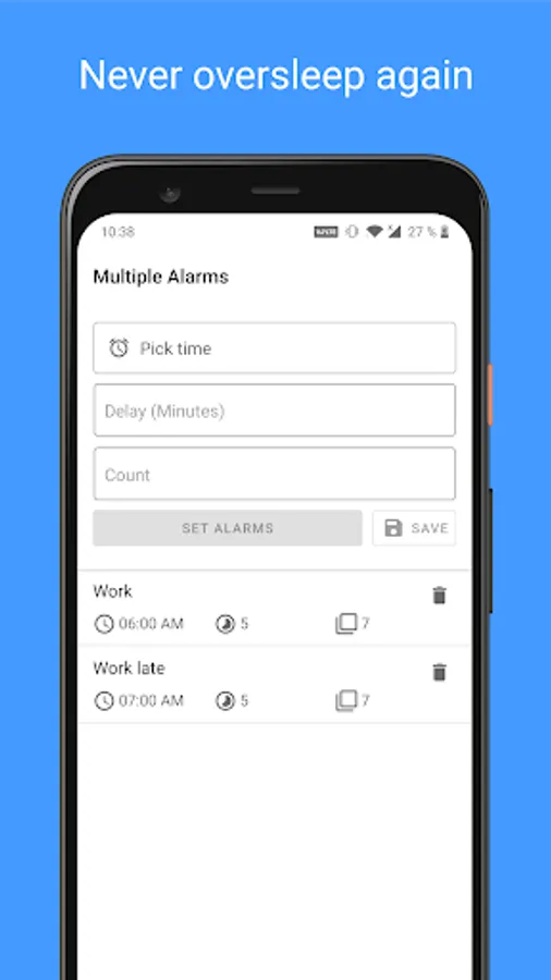 Have you ever overslept because of shutting off your alarm instead of putting it on snooze? This is not going to happen anymore with Multiple Alarms!