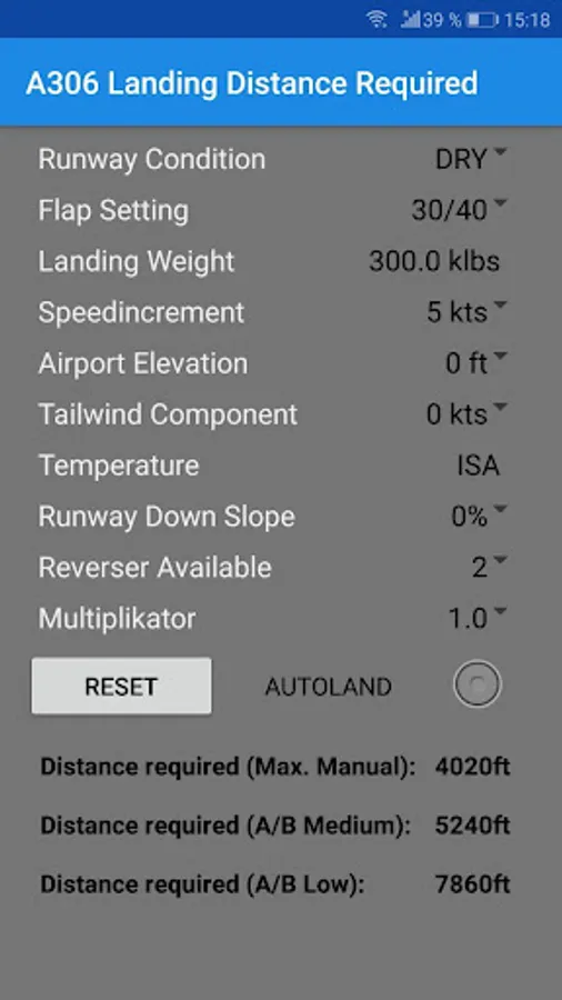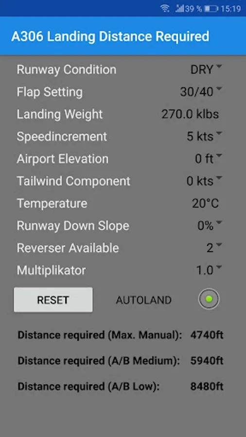 It calculates in a simple way the required landing distance with an Airbus A300-600 in regard to landing weight, elevation, weather, etc.