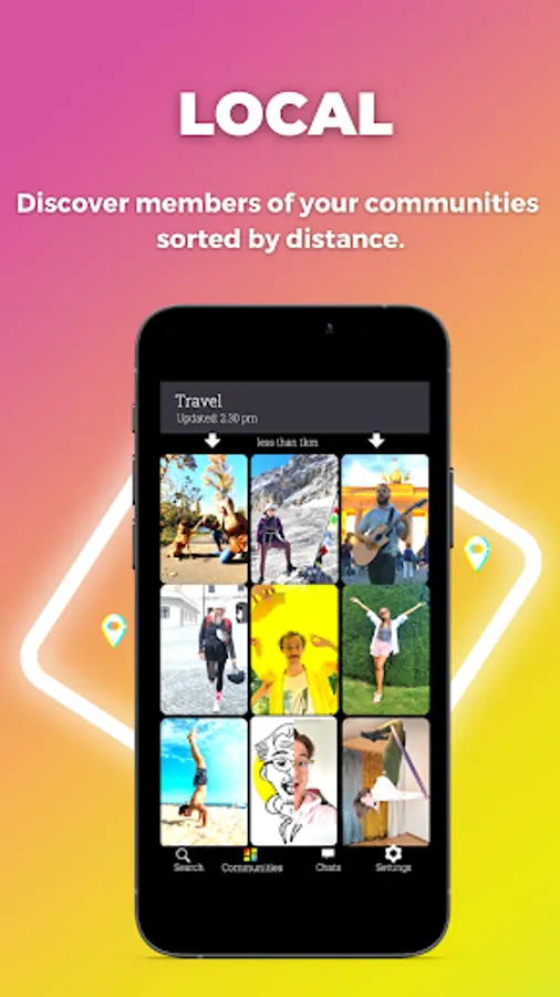 friendslist gives you access to cool new people, to find local friends wherever you are. Discover other members of your communities, all sorted by distance. That way you can quickly find like-minded people in your area who share the same passion and interest. The nearest runners, dancers, pet owners, or volleyball players are just a few clicks away!