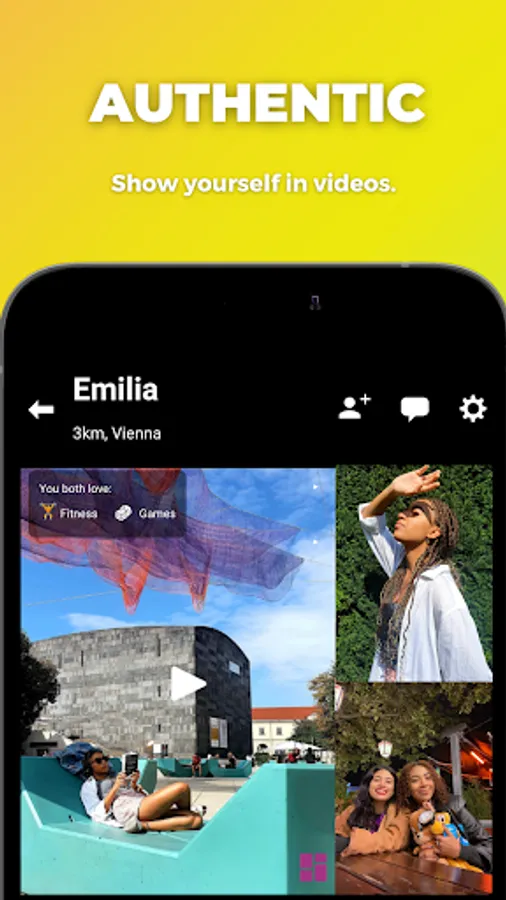 Upload short videos about yourself to make many great & authentic impressions! Let others discover your videos about your cute pet, your quirky dance moves, or your fitness sessions. It's all about having fun and expressing what is important to YOU!