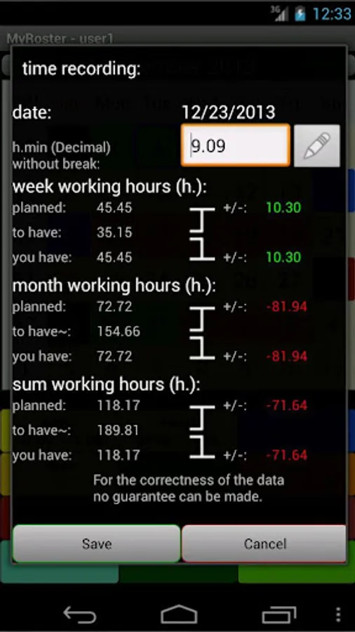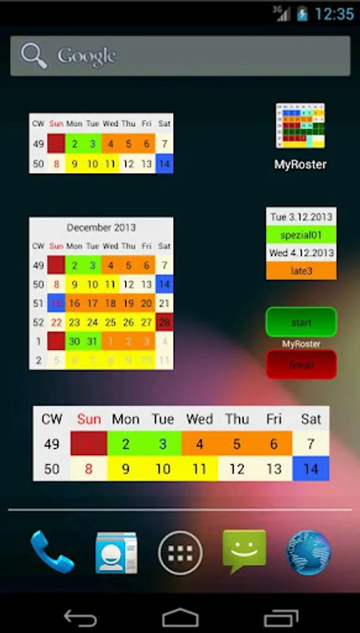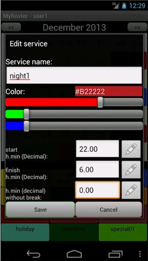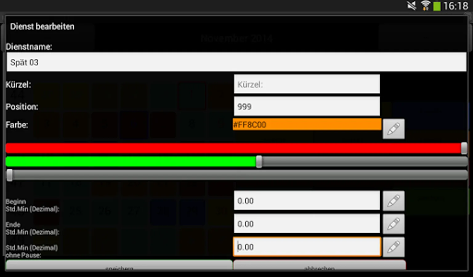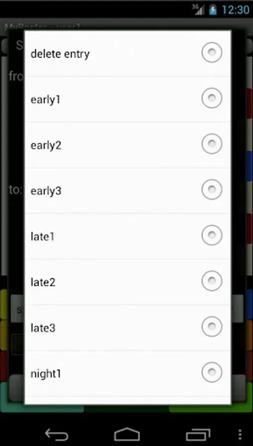 - Possibility to input of shift cycles. eg: F, F, S , S, N , N,... Long click on a day ( submenu)