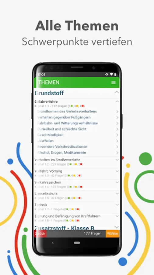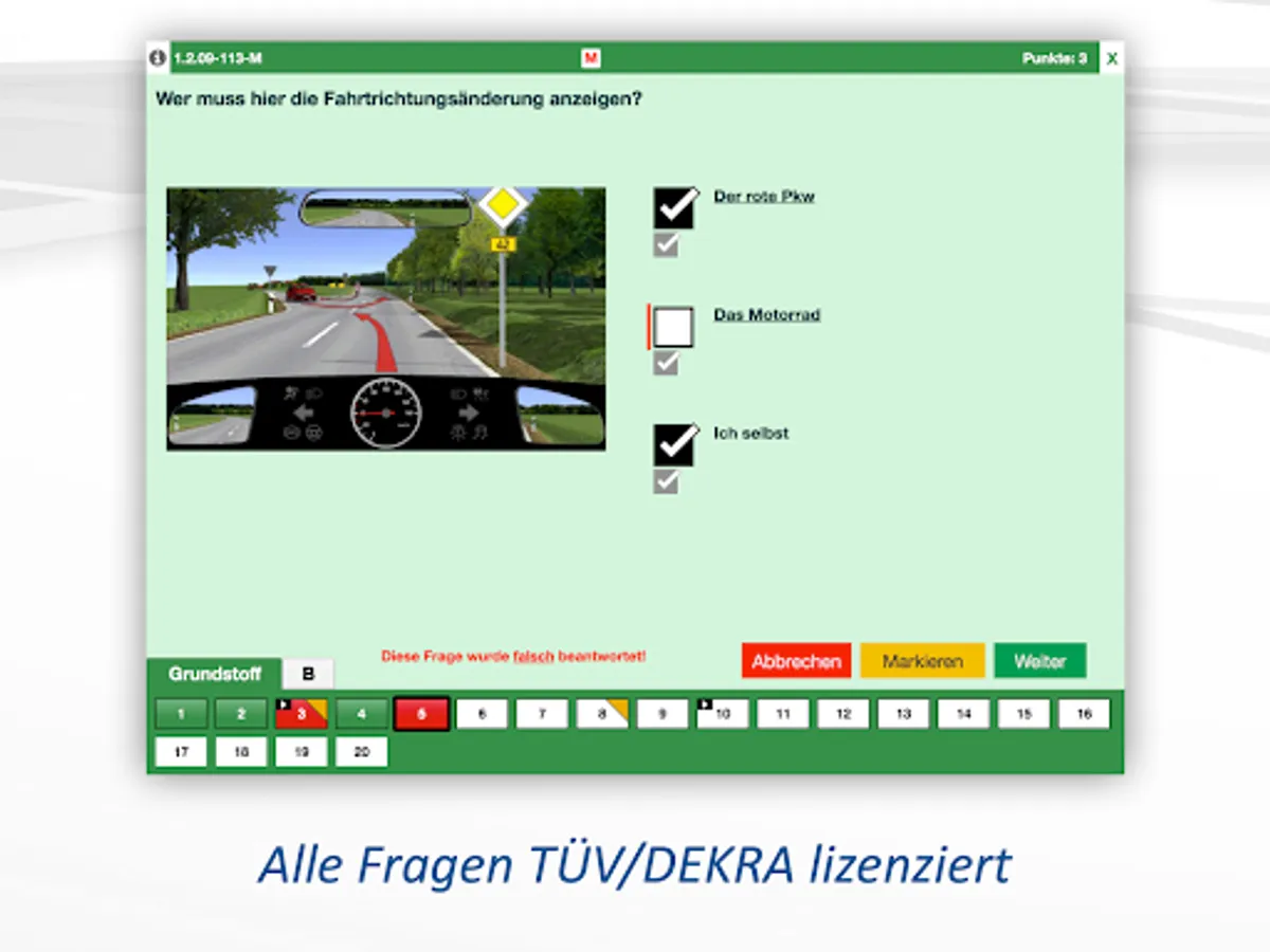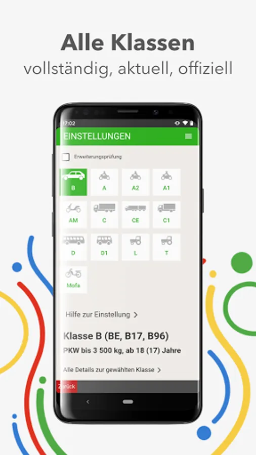 With our driving school theory app, you'll pass the theory test quickly and safely. The app has all official questions, pictures and videos for all classes. Thanks to automatic updates of the questions from TÜV and DEKRA, you are always up to date.