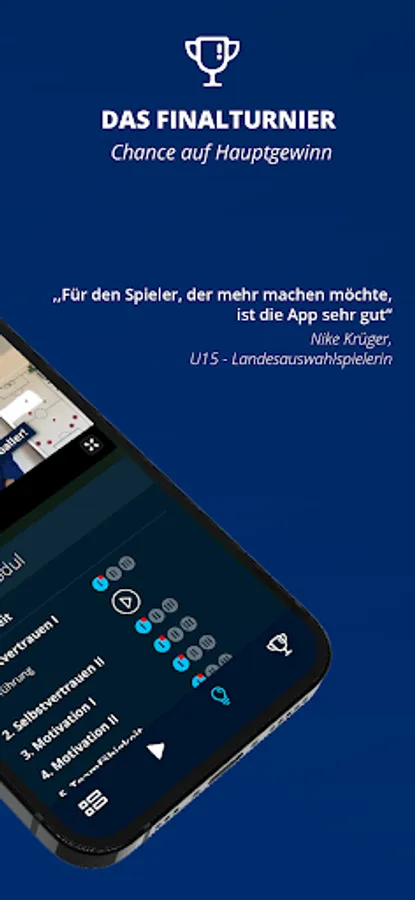 With our 70 - day program you can improve your skills daily in 10 milestones in the modules technology, strength, coordination, speed and goalkeeping. Over 500 explanatory and training videos explain the exercises to you and guide you through your training.