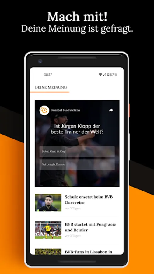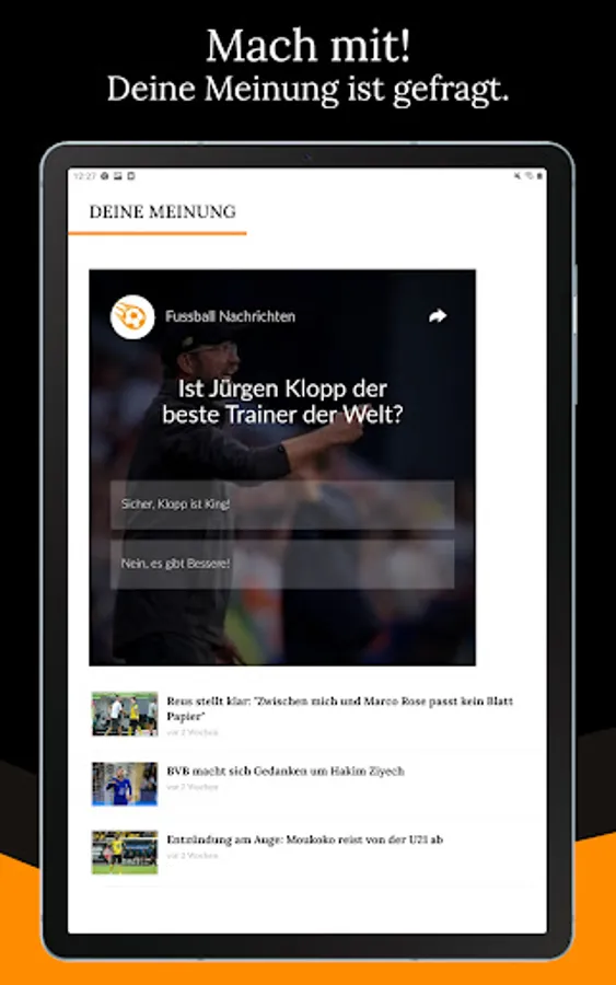 Do you love football and always want to be informed? Then you are right here. The new soccer app for Germany provides you with the latest news. Always up to date, always to the point.