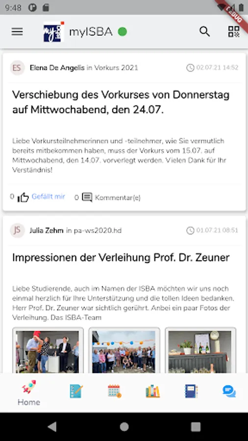 The myISBA app shows you all the important information - day after day - automatically on your smartphone. You will be informed about changes and news directly by push message. In-course news, relevant materials, your database for literature research and events for the entire F + U - you can now find all of this centrally and within reach in the myISBA app.