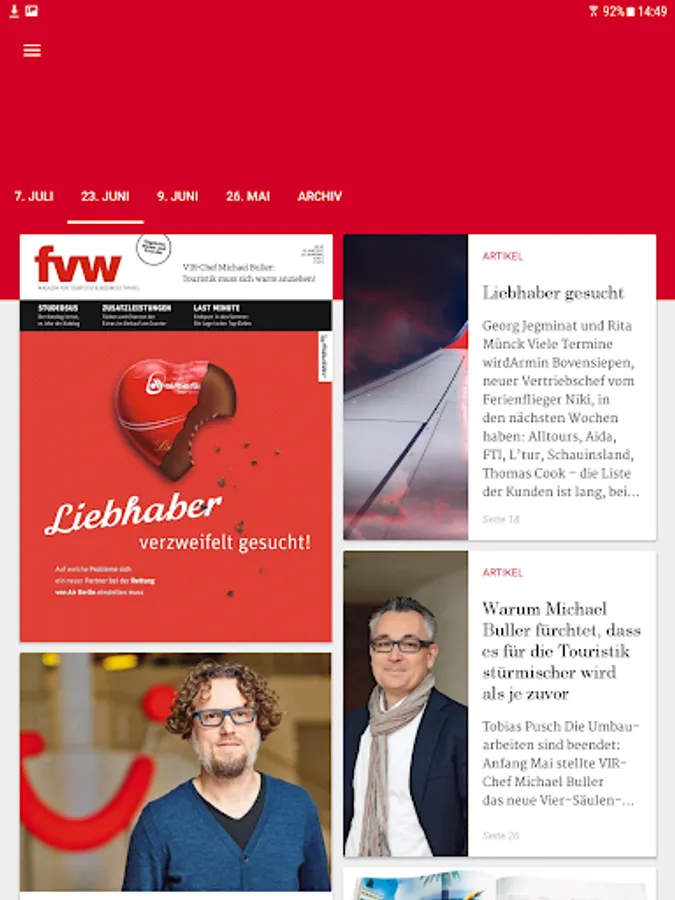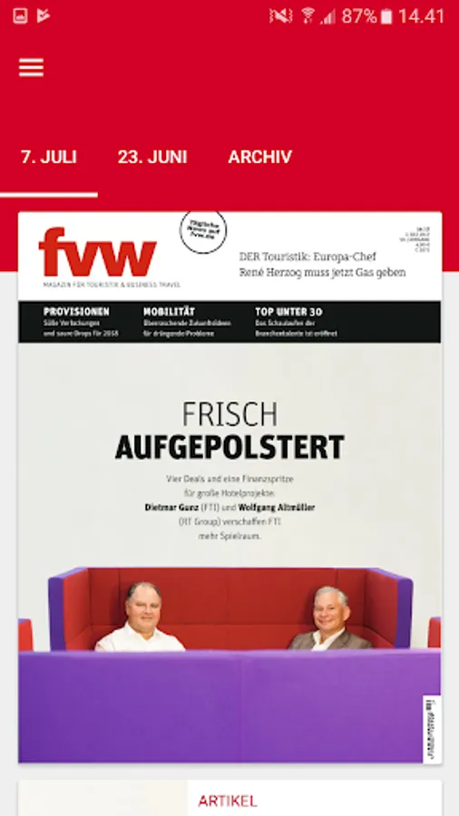 The digital edition of fvw is available for download on Thursday from 6 p.m. one day before publication. For fvw premium subscribers, the digital edition is already included in the existing subscription.