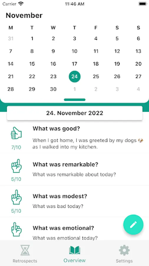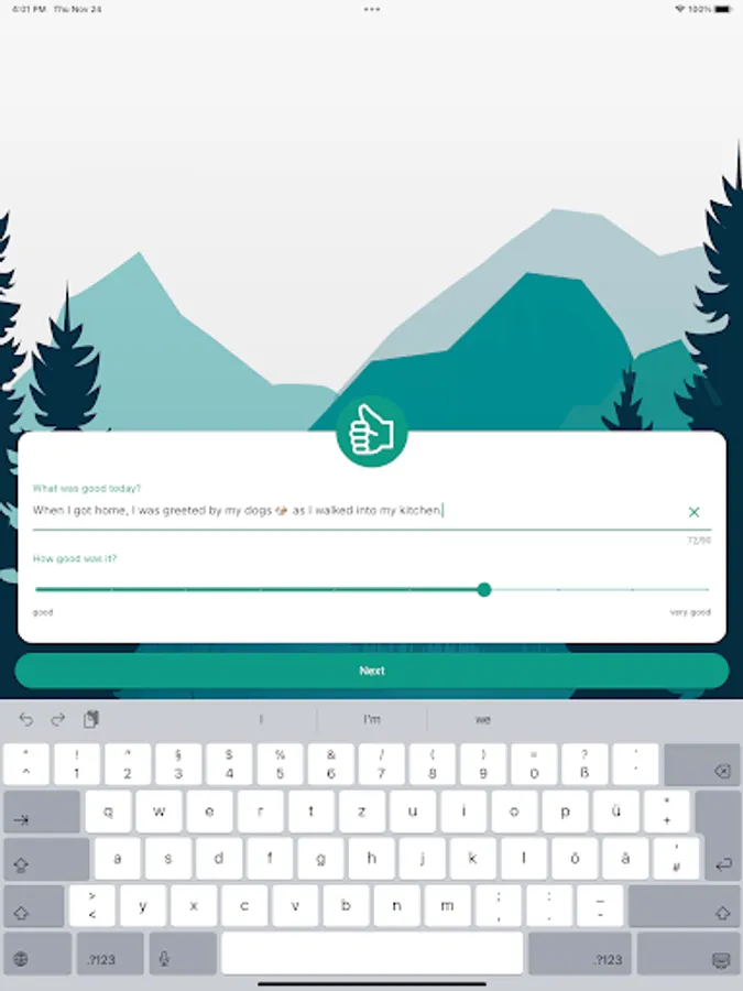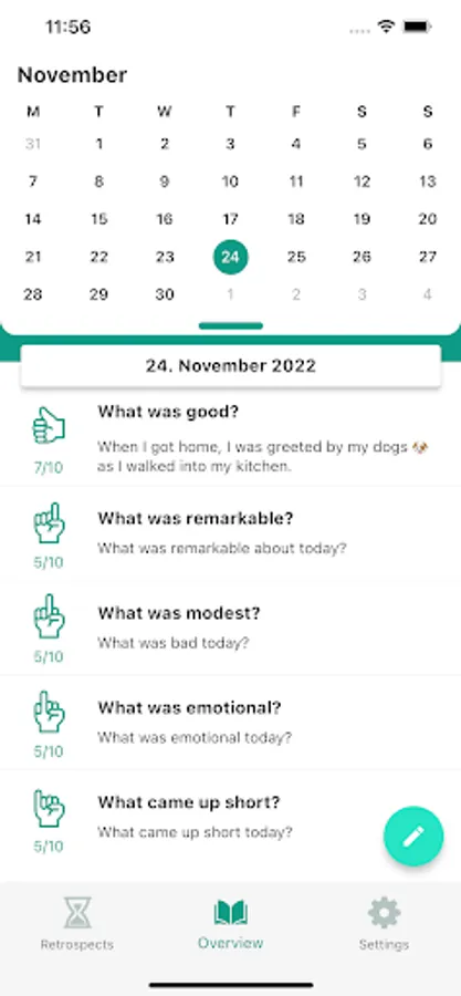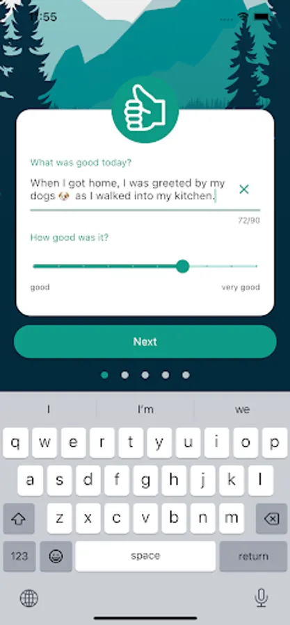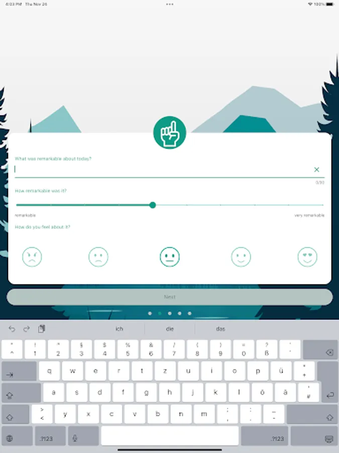 The 5-finger principle consists of five questions, each of which is linked to a finger. You will receive a daily reminder to reflect on your day based on the five questions.