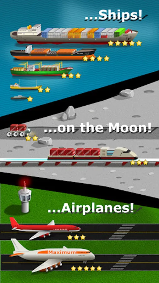 The Freight Trains await your orders. Use the trains in local or international transports to increase your profits. Decide how to expand your logistics network to maximize the profits. You also have to manage the expansion of the port and airport with numerous ships, planes and infrastructure. Can you make more money with a fast freighter or a container ship?