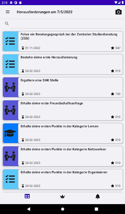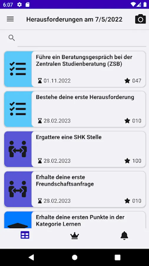 All you have to do is complete the learning, organizing and networking challenges. This can be something as simple as attending a specific lecture or exercise, borrowing a book, or going out to eat in the canteen. You will always receive direct feedback on whether you were able to successfully complete the challenge. Each challenge brings you closer to academic success.
