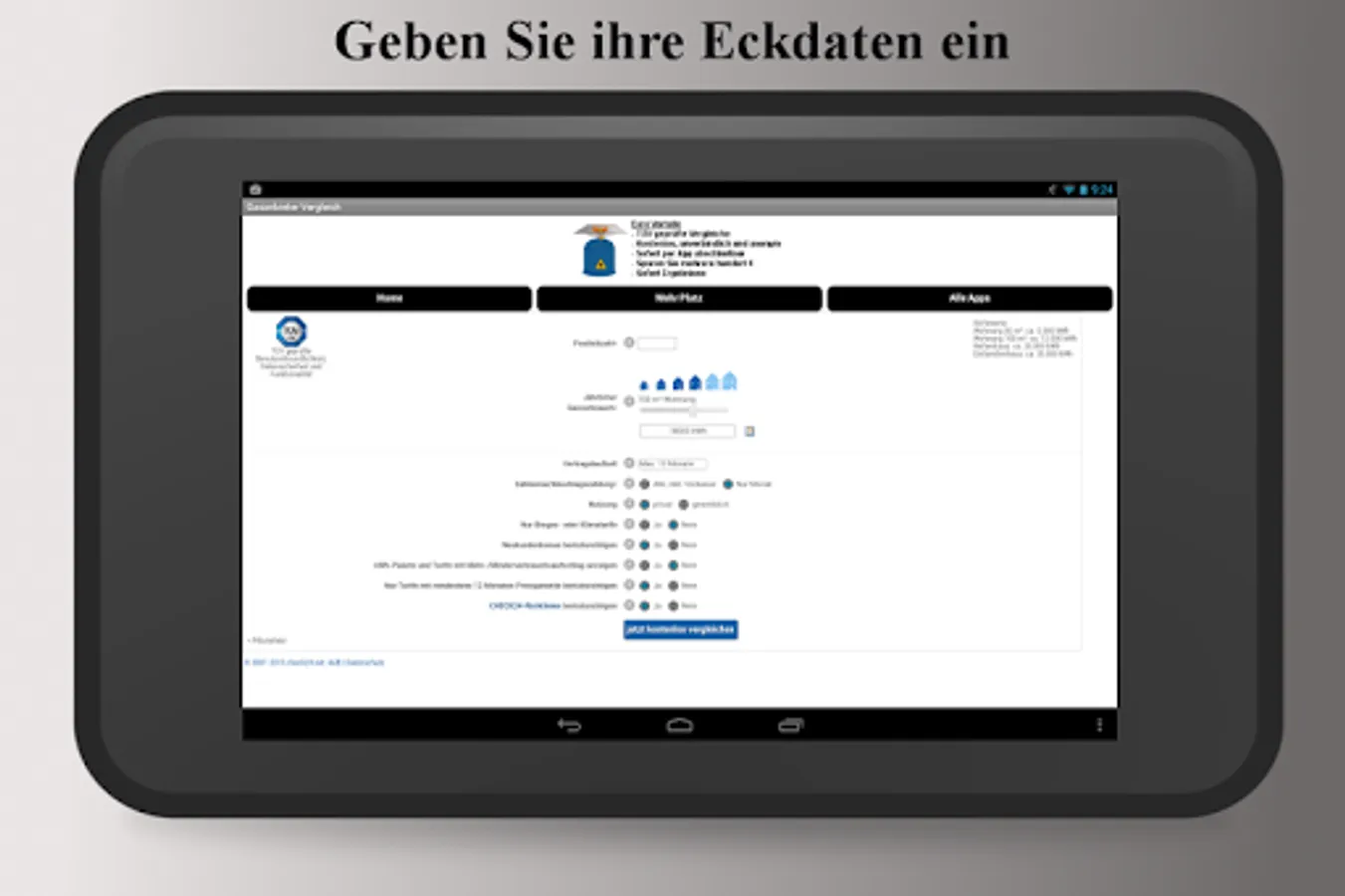 For a comparison, only post code and gas consumption per year are needed. Only with a change further data are needed.