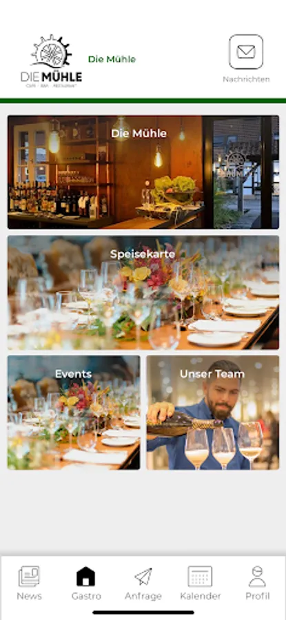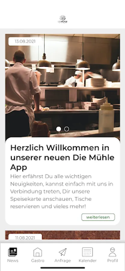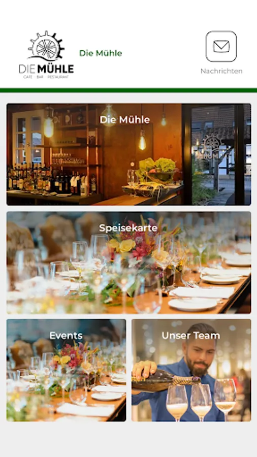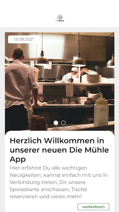 Get a new kind of personal connection to your MÜHLE. The full range in the form of menus and drinks, special features of the kitchen and bar or an overview of the team - you always have a multifaceted insight behind the gastronomic MÜHLE experience. With a messenger integrated into the app, the digital exchange between you and your MÜHLE is easier and more uncomplicated than ever.
