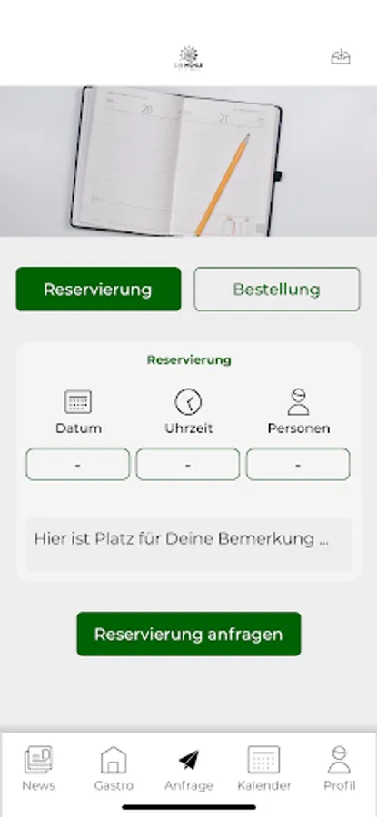With the inquiry tool, you can easily send your inquiry for the next reservation to your MÜHLE from anywhere. Simply take out your smartphone, open the app and send your own request, date, time, number of people to the team. The company team can confirm the requested appointment directly or send a counter-suggestion. The same function is also available for orders for pickup.