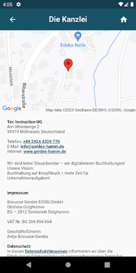 Of course you have this application always a direct line to GoBD firm. All contact details incl. Convenient Directions are available therein. If you phone number or email address times do not have on hand, simply refer to the app.