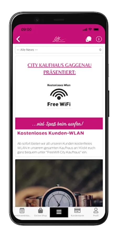 The City Kaufhaus app offers you all the advantages of the Gaggenau Bonus Card and much more. You always have the bonus card to hand and can access and redeem your points at any time. With the City Kaufhaus app you won't miss any more news.