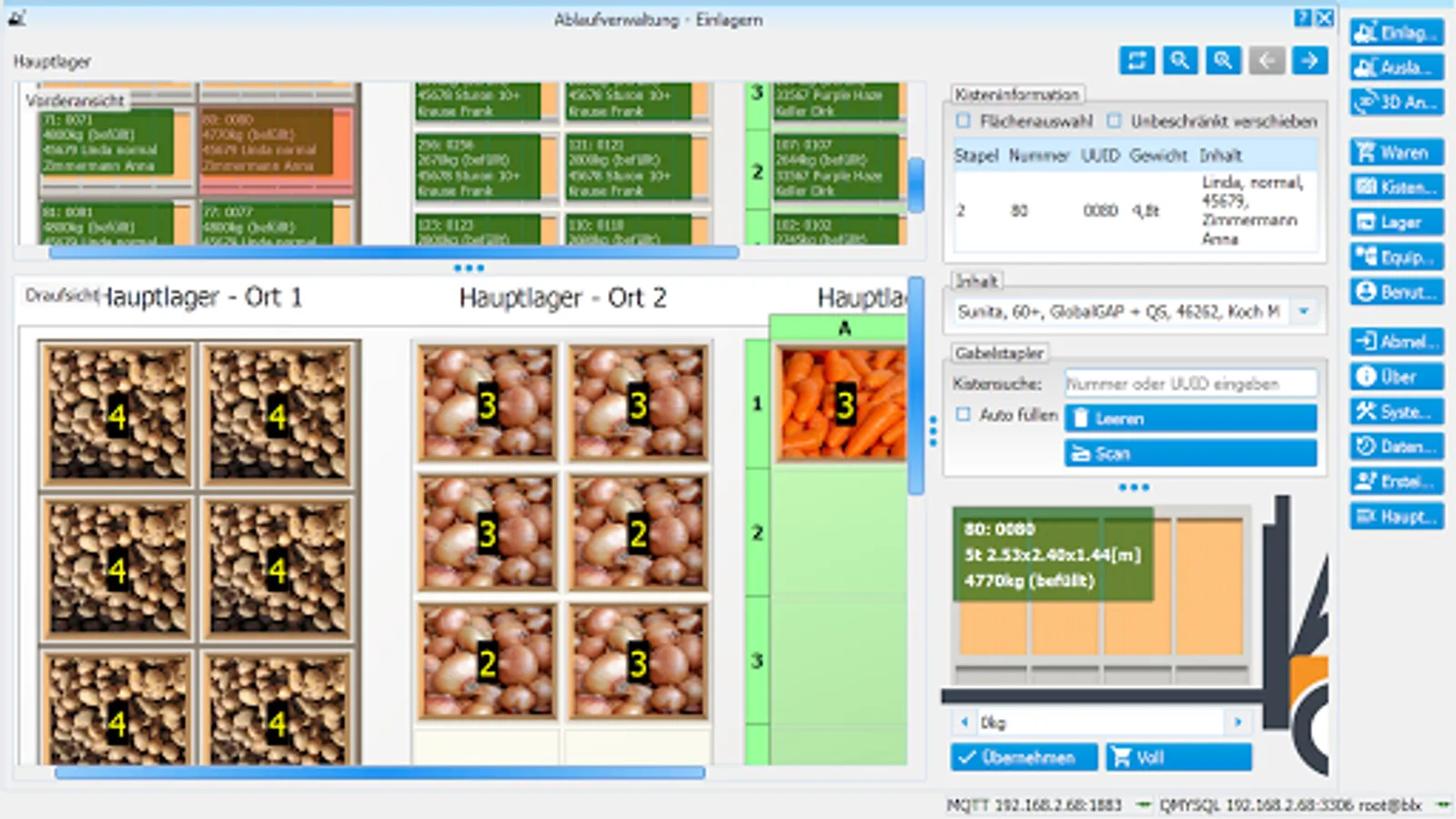 From the storage with the incoming goods to the warehouse movements, the removal of the potatoes, the handling of stored goods and the sorting.