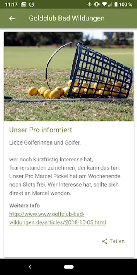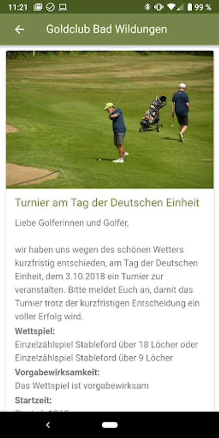 You will receive announcements for tournaments, results and current information from the Golfclub Bad Wildungen directly to your smartphone.