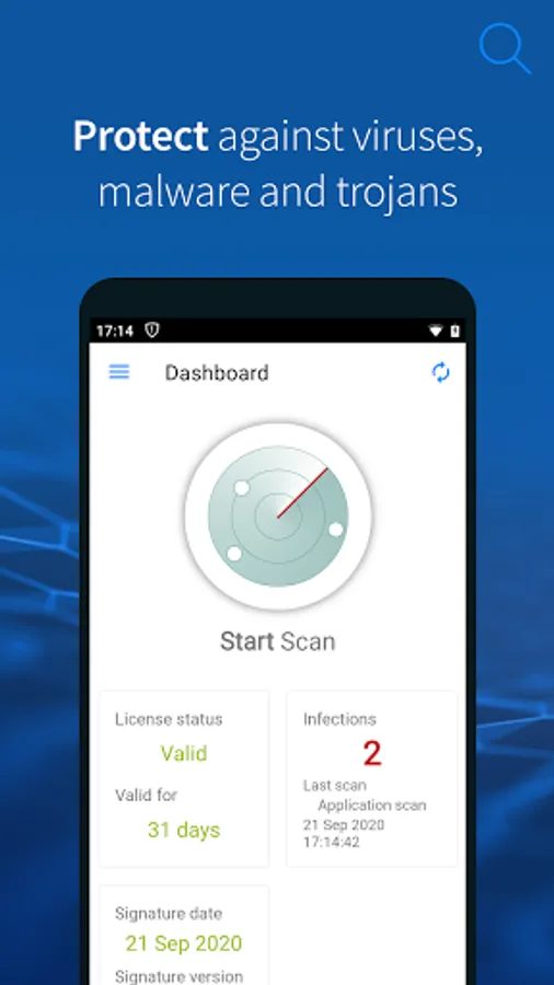 Our antivirus is like your own silent but sizeable bodyguard. It unobtrusively scans your entire device in the background and blocks all kinds of malware, including viruses, ransomware Trojans, and dangerous apps. Even directly during the installation of a new app, two scan engines detect every threat, with no exceptions. Thanks to its cloud connection, your antivirus software is always kept up to date.