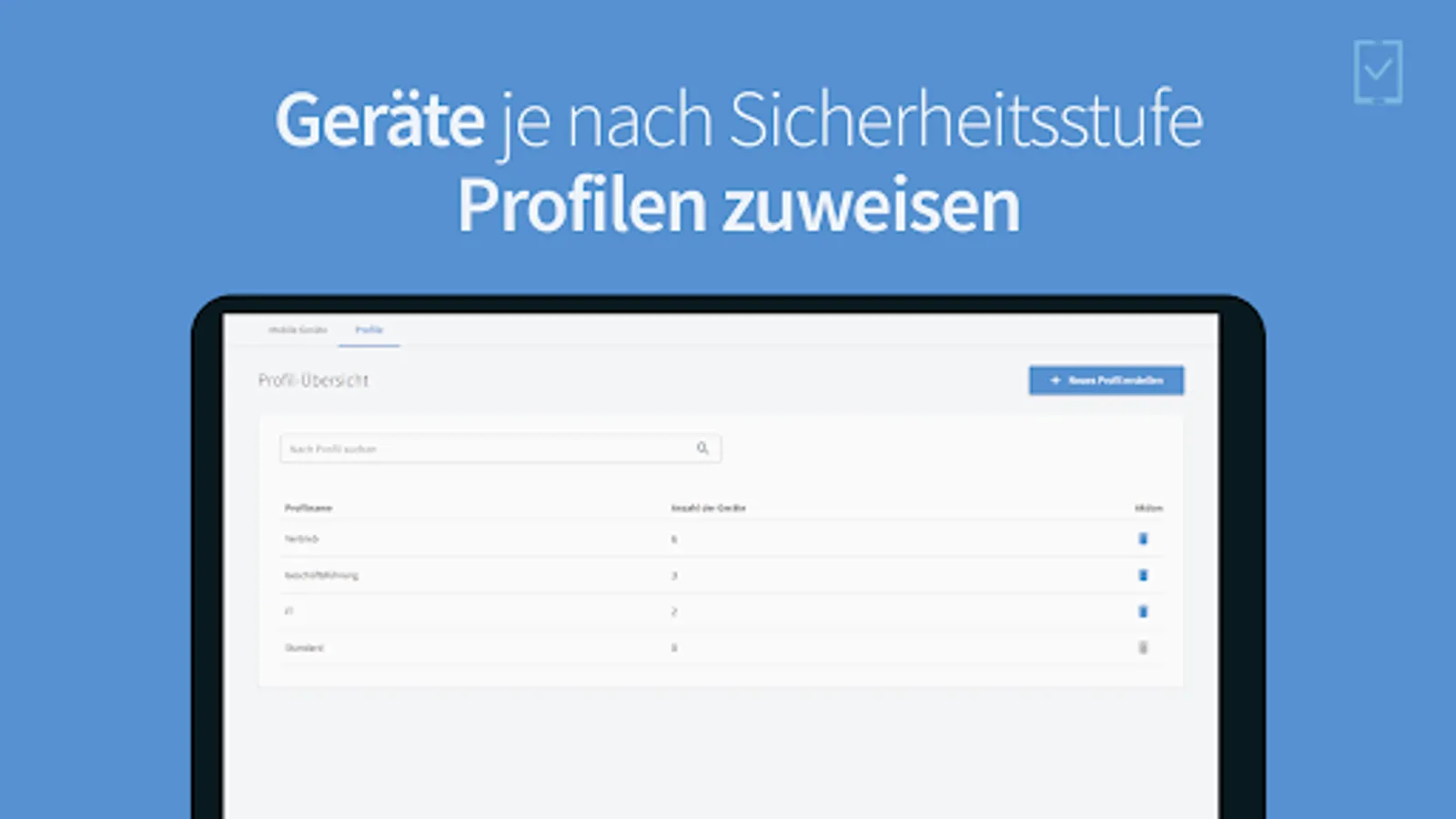 Assign mobile devices from departments or locations to individual profiles, depending on the security level.