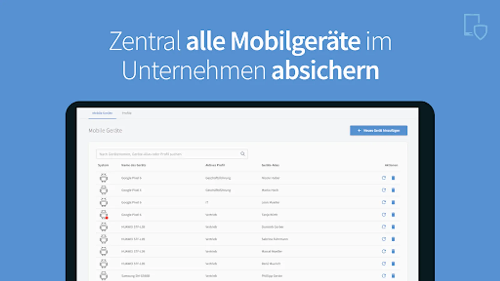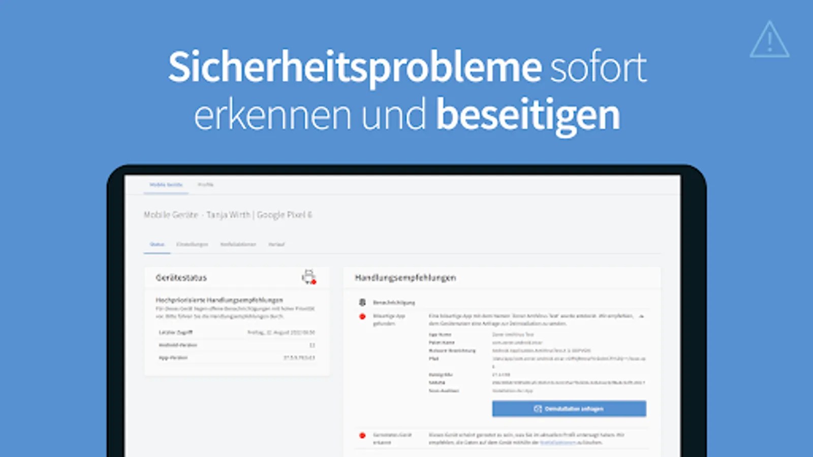 You always have an overview of the security of all mobile devices in the central dashboard.