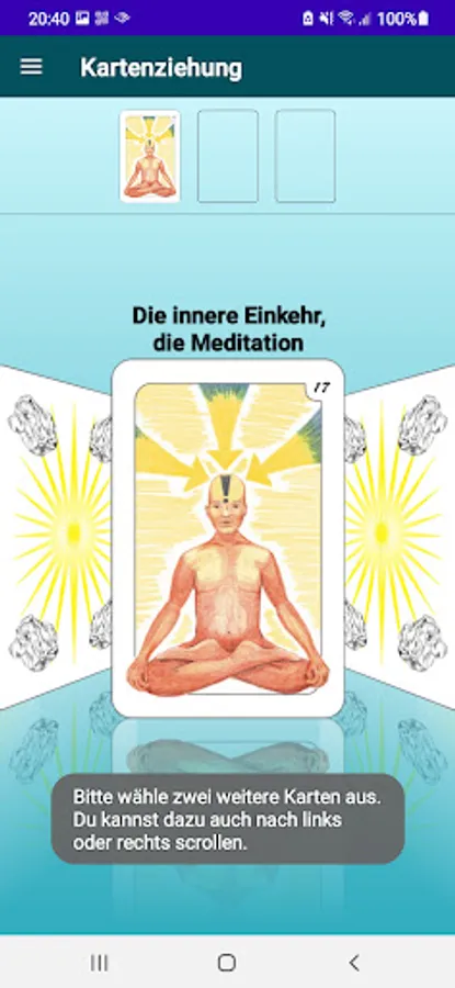The Opalia Light Card Oracle app offers you a variety of explanatory options. Ask a question, draw one or three cards and be surprised! You will be amazed. Want to know more about it? Then go to www.seelenprofiling.de.