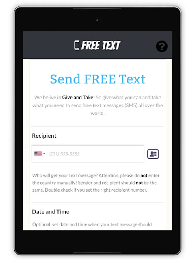 Optional, set date and time when your free message should arrive the recipient.