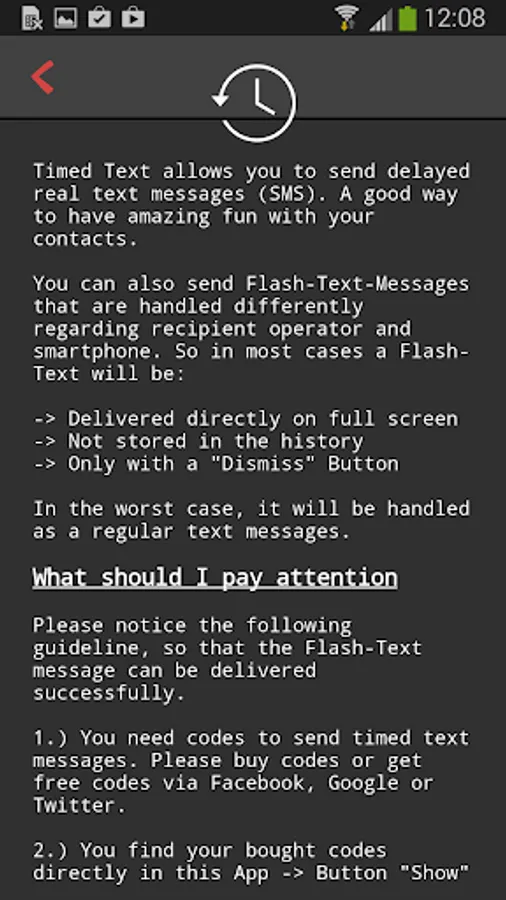 Timed Text allows you to send delayed real text messages (SMS). A good way to have amazing fun with your contacts, plan your outgoing texts or use a text as a simple reminder.