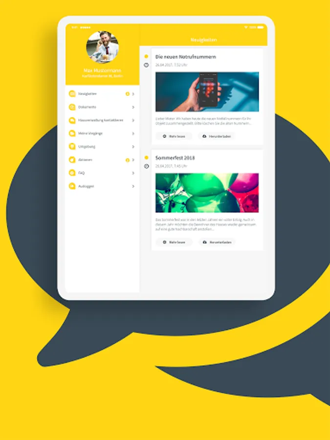 Notifications about your house and tenancy directly via our app. If the emergency numbers change or if we inform you about maintenance dates, you will receive the message directly on your smartphone.