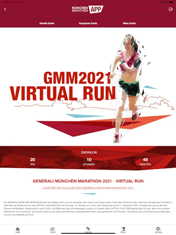 The GENERALI MÜNCHEN MARATHON is breaking new ground and you can either start the real run or virtually run your route. After the successful premiere in 2020, the starting signal for the GENERALI MÜNCHEN MARATHON - VIRTUAL RUN 2021 will be given on Sunday, October 10th at 10 a.m. The finish line closes on December 31, 2021.