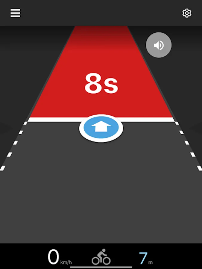 At a stop, the view switches and shows the expected time until the traffic light changes to green above the stop line. If the voice output is activated, a message is given a few seconds before the green light begins.