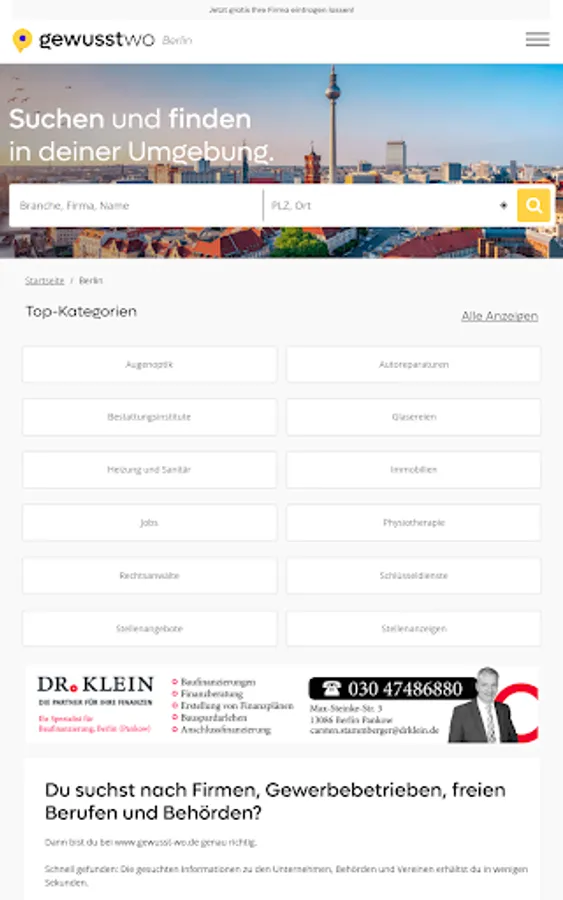 As a print product and as an Internet application is known where-known in many parts of Germany as an informative and always up to date Germany-wide business directory. With the know-where app, the publisher Beleke completes its range and combines this app data quality and mobility. Enriched with thousands of keywords, the nationwide entries from all industries and professions can be found quickly and easily, whether (assuming localization) near or at the local search products or services will be found quickly. Routing and many other features are standard.