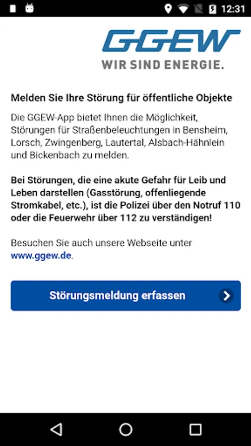 With the GGEW app, you can easily faults and shortcomings of public street lighting in the following cities and municipalities Report: