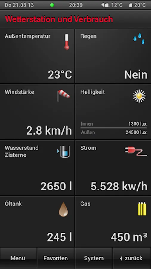 The energy generation of a photovoltaic system can be viewed just as easily as the fill level of a cistern for rain water.